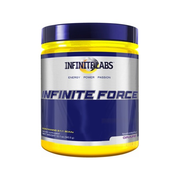 Infinite Force® de Infinite Labs es una fórmula de alto rendimiento para la recuperación muscular que contiene una mezcla precisa de aminoácidos entre los que se incluyen los aminoácidos de cadena ramificada en una proporción de 2:1:1 (L-leucina, L-isoleucina y L-valina), la L-glutamina, CarnoSyn®, una versión patentada de Beta alanina, la N-acetil L-tirosina y la L-fenilalanina, además de vitaminas para mejorar la tasa de recuperación muscular y ayudar en la reposición de glucógeno muscular para potenciar el rendimiento deportivo en general.