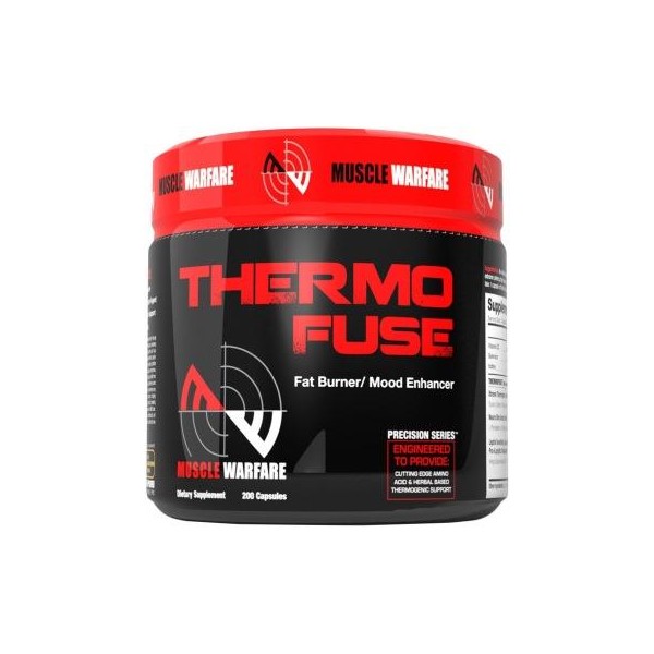 ThermoFuse™ de Muscle Warfare es un potente quemador de grasas que mejora el estado de ánimo y que ha sido específicamente diseñado para aumentar la tasa metabólica y producir una intensa energía, favorecer la apoptosis de adipocitos, y ayudar a la optimización del tiroides y de la insulina.