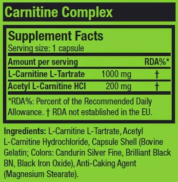 Complejo de carnitina (L-carnitina L-tartrato, acetil-L-carnitina HCL).