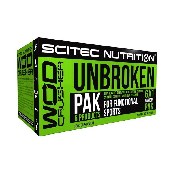 Unbroken Pak de Scitec Nutrition dentro de su nueva línea WOD Crusher destinada a deportistas de deportes funcionales como el Crossfit® es un poderoso suplemento para tomar después de entrenar destinado a mejorar la fuerza y la resistencia, favorecer la pérdida de grasa corporal y aumentar el desarrollo muscular en tus sesiones de entrenamiento más duras.
