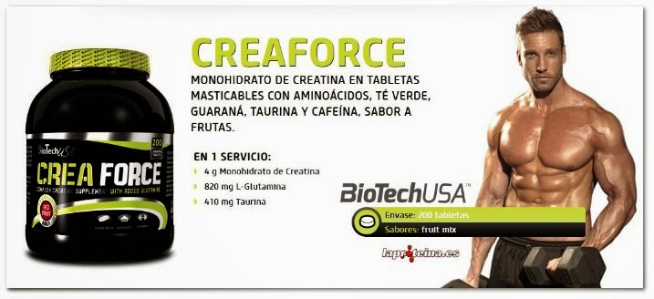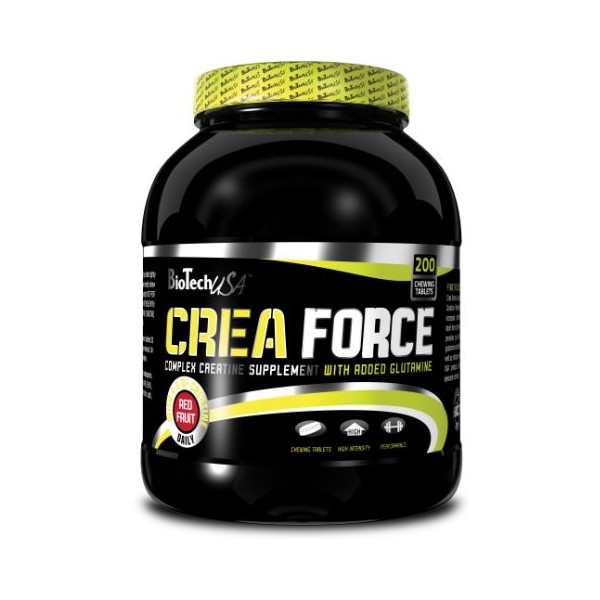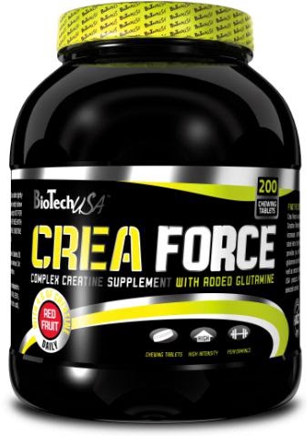 CreaForce de BioTech USA es un complejo avanzado de creatina en tabletas masticables cuyo objetivo principal es aumentar la potencia y la fuerza, además de favorecer la voluminización celular y el crecimiento muscular extremo.
