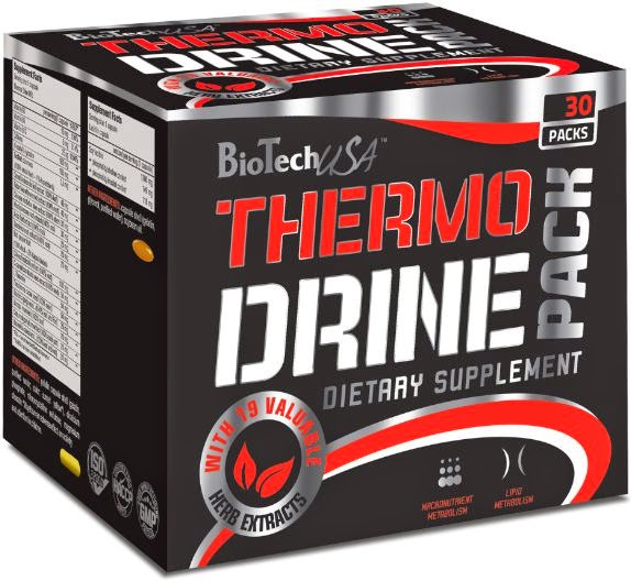 Thermo Drine Pack de BioTech USA es un complejo y moderno suplemento termogénico y lipotrópico, reforzado con unas altas dosis de L-Carnitina, con un contenido extra de cafeína, una excelente dosis de Lecitina y de CLA, y con los extractos de plantas seleccionados y otros componentes para reducir la grasa corporal de una forma segura y efectiva.