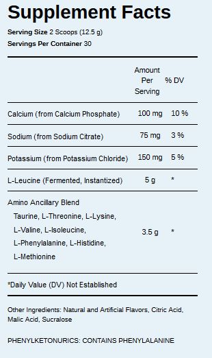Esta nueva versión proporciona 5 gramos de leucina por dosis, además de otros aminoácidos esenciales como la valina, la isoleucina, la histidina, la fenilalanina o la taurina, y que se completa con 325 mg de electrolitos por dosis.