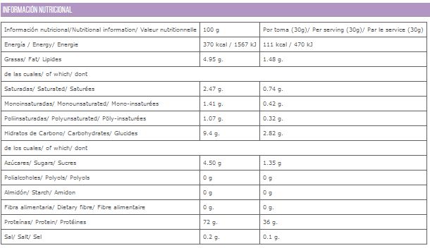 - Con 7,38 gramos de BCAAs y solo 1,46 gramos de grasas por servicio.