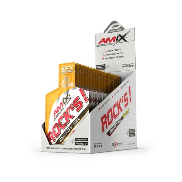 Rock´s Energy Gel de Amix™ Performance Series son unos deliciosos geles energéticos de 32 gramos que combinan varios tipos de hidratos de carbono junto con las vitaminas y minerales más importantes para ofrecernos una energía inmediata de rápida acción para tomar durante tus entrenamientos más intensos o en competición.