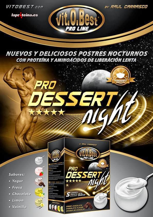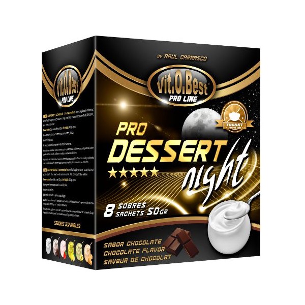 Pro Dessert Night de Vit.O.Best dentro de la nueva línea Pro Line es un postre instantáneo rico en proteínas que aporta proteínas y aminoácidos de liberación lenta.