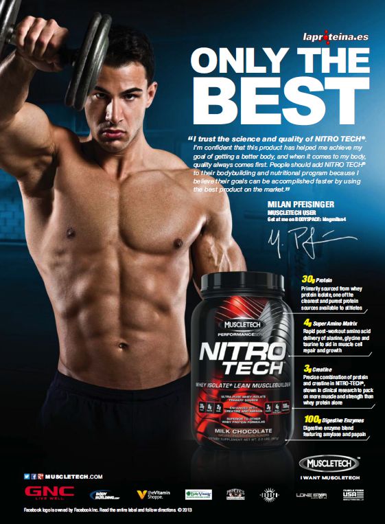 Nitro Tech™ Performance Series de MuscleTech es una proteína que contiene como fuente proteica principal el aislado de proteína de suero de leche de la mayor calidad posible (aislado e hidrolizado de suero) que se complementa con un extra de proteína de concentrado de suero ultrafiltrado y una matriz anabólica de aminoácidos (aminoácidos de cadena ramificada y glutamina), y que ha sido diseñada para proporcionarte el máximo crecimiento muscular.