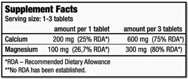 Calcium 200 mg & Magnesium 100 mg per Serving