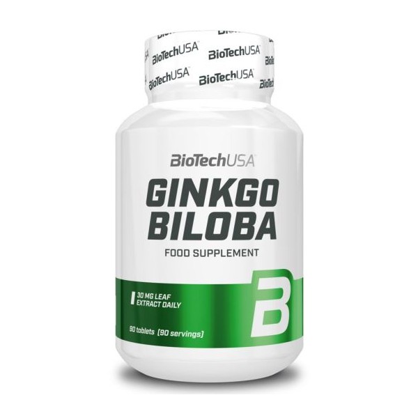 Ginkgo Biloba de BioTech USA es un suplemento en tabletas que proporciona 80 mg de extracto de hojas de ginkgo biloba proporcionando 19,2 mg de flavonoides glicósidos y 4,8 mg de terpeno lactonas por tableta.