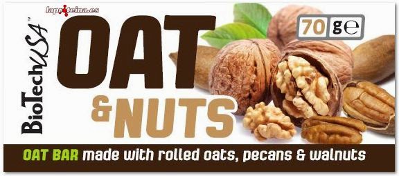Las barritas de Oat & Nuts de BioTech USA son unas deliciosas barritas de avena con un alto contenido en fibra dietética y con sabrosas y crujientes nueces y nueces de pecán.
