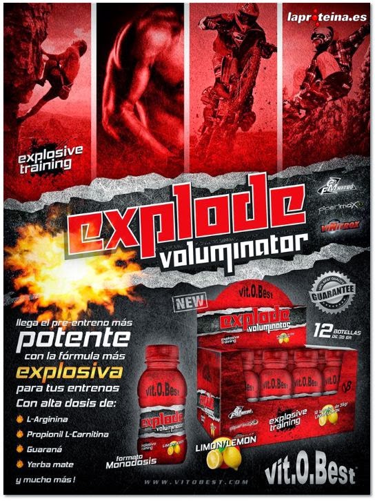 Explode Voluminator de Vit.O.Best es la nueva versión del exitoso Voluminator presentado ahora en unas cómodas botellas individuales listas para reconstituir con un poco de agua que te proporcionarán los entrenamientos más explosivos.