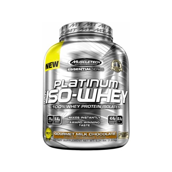 Platinum 100% Iso-Whey es la nueva proteína de la línea Essential Series compuesta por aislado de proteína de suero de leche microfiltrado ultrapuro de la marca Nº1 en todo el mundo Muscletech®.