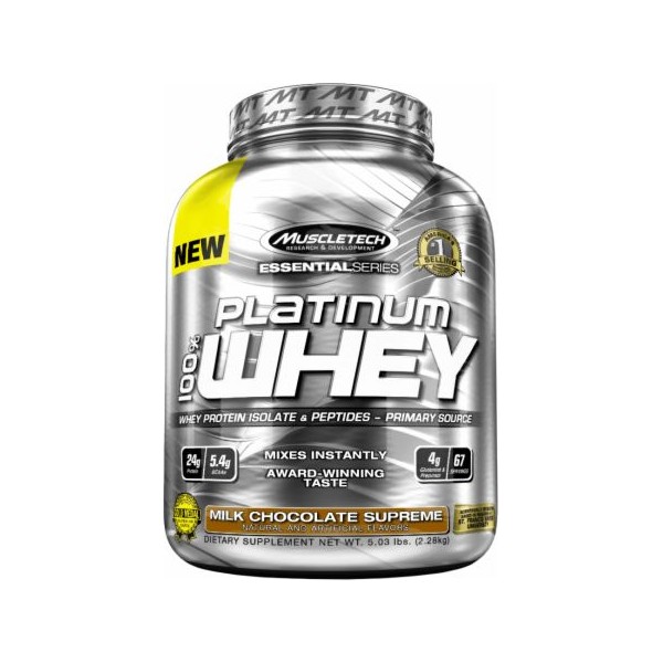 Platinum 100% Whey es la nueva proteína de la línea Essential Series compuesta por aislado de proteína de suero, péptidos de proteína de suero y concentrado de proteína de suero de la marca Nº1 en todo el mundo Muscletech®.