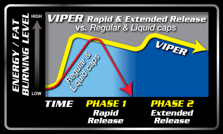 Viper eleva la ciencia de la quema de grasas al siguiente nivel! Está desarrollado con tecnología "multi-fase", combinando la liberación rápida, con una matriz de liberación prolongada.