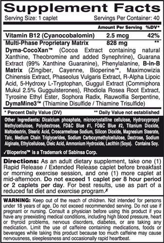 - Dyma-CocoXan ™ (extracto de Cacao Natural, contiene Xantina, Teobromina y Sinefrina), extracto de Guaraná, Fenilalanina