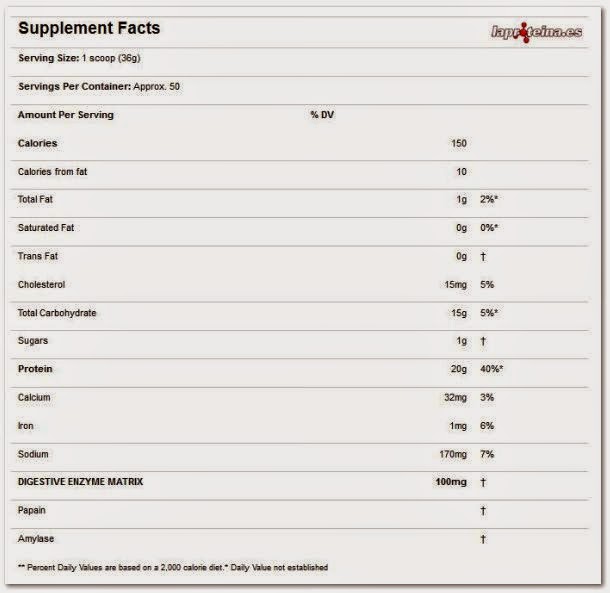 Como suplemento dietético para adultos sanos, mezclar 1 servicio de 37 gramos (una cucharada rasa) con 200 ml de agua o leche desnatada.