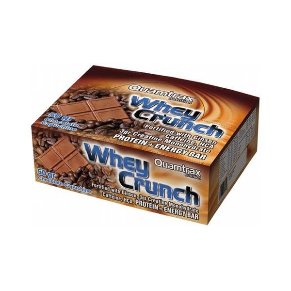 Las barritas Whey Crunch de Quamtrax Nutrition son unas barritas proteico-energéticas con casi 13 gramos de proteína por unidad y que contienen compuestos como el monohidrato de creatina, la cafeína, el ginseng y la garcinia cambogia que actúan de forma sinérgica estimulando el sistema nervioso, manteniendo la alerta mental, disminuyendo la fatiga e incrementando la disposición a entrenamientos intensos.