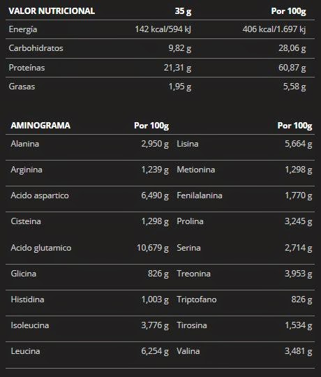 - Contenido de más de 10% de ácido glutámico para la recuperación muscular.