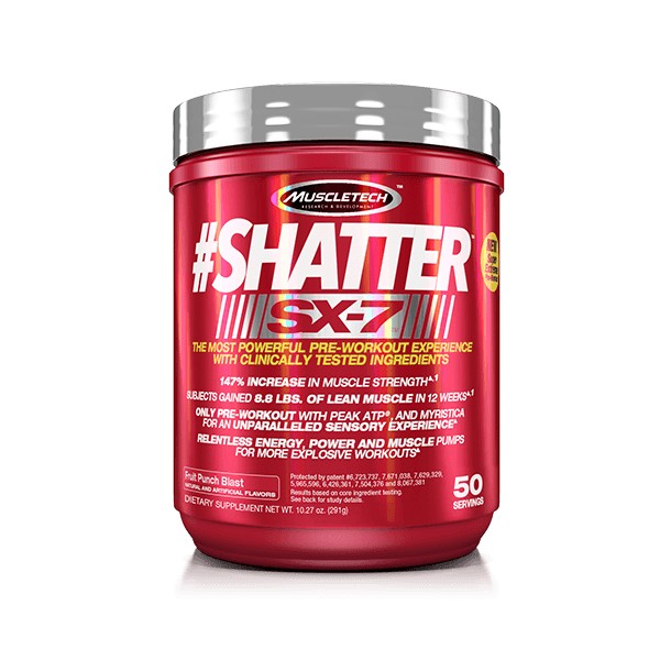 El nuevo #Shatter™ SX-7™ de Muscletech® es un suplemento de pre-entrenamiento que no contiene creatina y que ha sido formulado con ingredientes súper extremos y de vanguardia, con la garantía de calidad de la prestigiosa marca y que te ofrece una poderosa experiencia de entrenamiento sin precedentes.