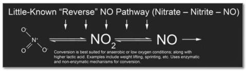 Como puede observarse, cuando se ingieren un nitrato, primero se convierte en un nitrito, y en última instancia en puro óxido nítrico. Lo que hace tan eficaz a esta forma de producción de óxido nítrico es la rapidez con la que es capaz de completarse en el cuerpo, que le proporciona unos resultados aparentemente instantáneos.