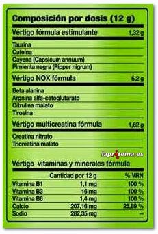 Vértigo multicreatina fórmula: 1,62 gramos.
