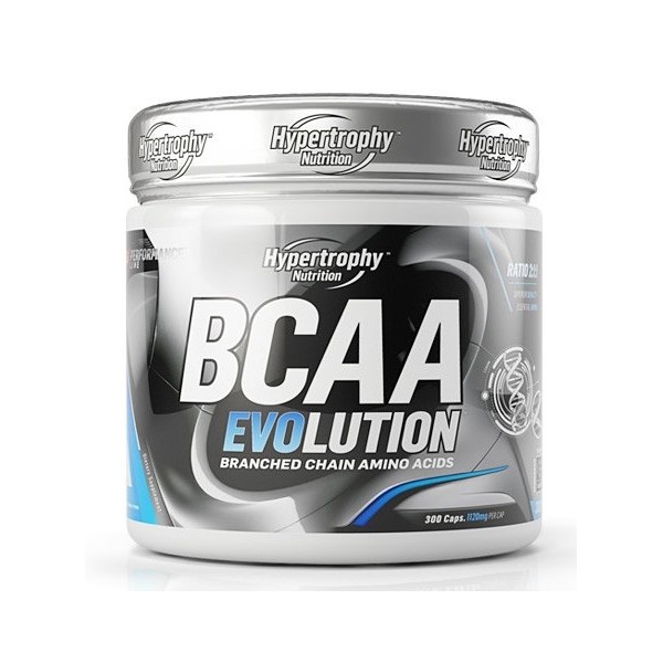 BCAA Evolution de Hypertrophy™ Nutrition es un suplemento que contiene cápsulas de 1000 mg de aminoácidos de cadena ramificada de superior calidad, con un ratio 2:1:1 entre leucina, valina e isoleucina y enriquecidos con vitamina B6.