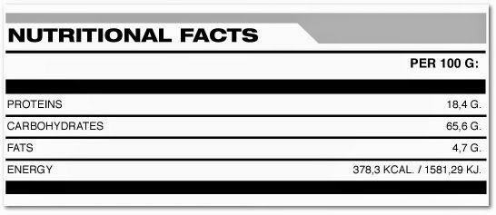 Se trata de una fórmula muy baja en grasas que tiene un alto contenido de hidratos de carbono (66%) y que a la vez contiene proteínas de calidad (18%) en la proporción adecuada para un aumento rápido de la masa muscular.