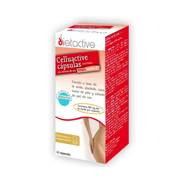 Celluactive de la marca Dietactive es un complemento para mujeres elaborado a base de plantas conocidas tradicionalmente por su acción diurética y depurativa (té verde, alcachofa, rusco, piña y piel de uva) diseñado con el objetivo de estimular la eliminación de las grasas y frenar su almacenamiento, lo que contribuye a combatir la celulitis y proporcionar al mismo tiempo un efecto tensor y reestructurante.