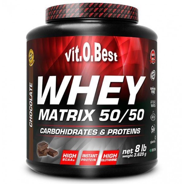 Whey Matrix 50/50 de Vit.O.Best es un suplemento nutricional compuesto por una mezcla al 50% entre carbohidratos y proteínas de gran calidad que ha sido reforzado con creatina, glutamina Kyowa™ y taurina para un mayor efecto anabólico.