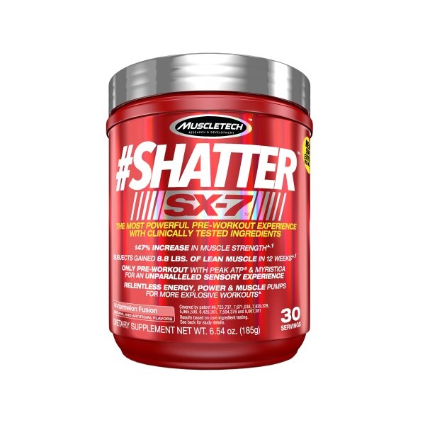 #Shatter™ SX-7™ es el nuevo y poderoso pre-entreno con ingredientes probados clinicamente de la marca Nº1 en todo el mundo Muscletech®.