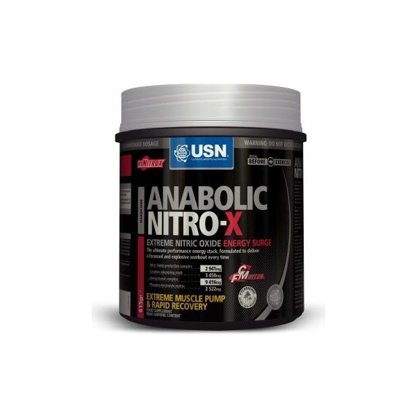 Anabolic Nitro-X de USN dentro de su línea Hardcore Series es una explosiva fórmula de pre-entrenamiento con una cuádruple matriz para incrementar significativamente la producción de óxido nítrico y generar una gran energía y fuerza durante el entrenamiento.