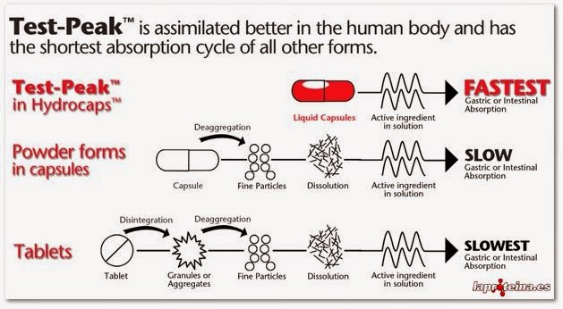 Cada ingrediente de Test Peak™ ha sido clínicamente probado con gran precisión para proporcionar los máximos resultados. Cada cápsula cuenta con un sistema de suministro líquido micronizado que consigue acortar el ciclo de absorción, lo que permite que cada ingrediente realice mejor su función y al mismo tiempo se generen menos residuos. El sistema de transporte de fosfolípidos de las cápsulas patentadas de Test Peak™ consigue una mayor biodisponiblidad de cada uno de los ingredientes activos de la fórmula. Cada cápsula se inunda con una burbuja de nitrógeno para eliminar el oxígeno y proteger de este modo sus avanzados ingredientes muy sensibles a la oxidación antes de ser sellados. Los ingredientes activos son entregados rápidamente a sus lugares de destino, ayudando de este modo mucho mejor que otras fórmulas con ingredientes parecidos al desarrollo muscular y a lograr unos nuevos límites naturales.