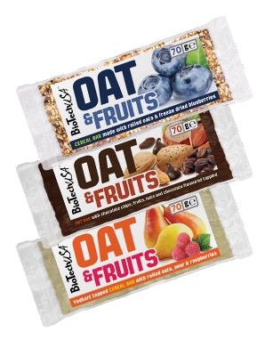 Las barritas de Oat & Fruits de BioTech USA son unas deliciosas barritas de avena con un alto contenido en fibra dietética en tres versiones, Oat & Fruits with Chocolate que contiene virutas de chocolate, trocitos de fruta, avellanas y un sabroso topping de chocolate, Oat & Fruits Pear & Raspberry con sabrosos trocitos de pera y una cremosa capa de yogur de frambuesa, y Oat & Fruits with Blueberries con una deliciosa mezcla de arándanos liofilizados.