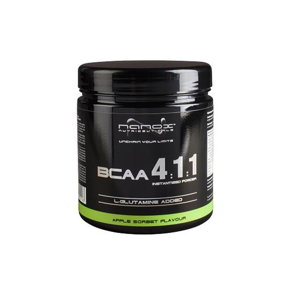 BCAA 4:1:1 de Nanox™ Nutriceuticals es un suplemento nutricional en polvo que contiene aminoácidos de cadena ramificada en una proporción 4:1:1 entre leucina, valina e isoleucina reforzados con L-glutamina, y que ha sido específicamente formulado para aquellos deportistas que buscan una estimulación extra de expansión de masa corporal y el crecimiento muscular extra, exigiendo un proceso de estímulo anabólico continuo e intensivo.