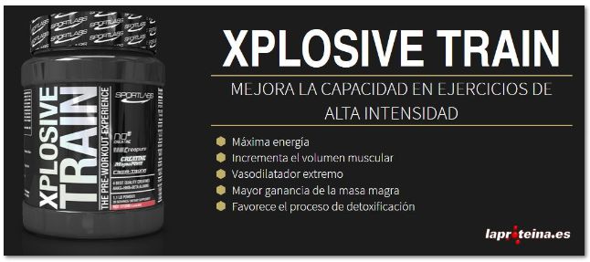 Xplosive Train de SportLabs® es el nuevo suplemento de pre-entrenamiento que combina 4 de las mejores formas de creatina del mercado (creatina monohidrato Creapure®, creatina nitrato, creatina MagnaPower® y Creatrona®) con potenciadores del óxido nítrico, estimulantes del sistema nervioso para una máxima intensidad, HMB y un complejo de vitaminas y minerales para ayudarte con los entrenamientos más explosivos.
