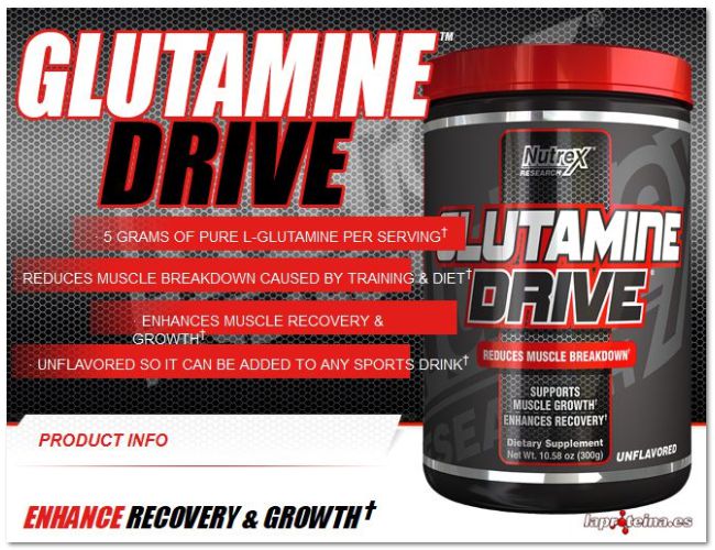 Glutamine Drive Black™ de Nutrex Research dentro de su serie más extrema Black Series contiene exclusivamente L-Glutamina en polvo para ayudar al crecimiento muscular, proteger a tu musculatura del catabolismo muscular y potenciar la recuperación.