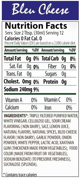 Bleu Cheese Dressing es una salsa de queso azul única libre de glúten, es como comer auténtica salsa de queso azul pero sin aportar las calorías que aportarías con una salsa tradicional, siendo una salsa apta para cualquier tipo de dieta y apta para evitar debilidades y momentos en los cuales se requiere comer algo realmente sabroso.
