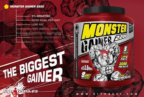 Monster Gainer 2200 contiene una estudiada combinación de una mezcla de hidratos de carbono con proteínas de suero de leche de alta calidad y creatina monohidrato, que ha sido especialmente formulada para atletas de elite y culturistas que desean aumentar su masa muscular de una forma notable, así como aquellas personas que necesitan un aumento de volúmen muscular rápido.