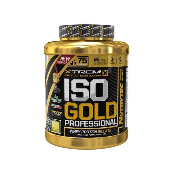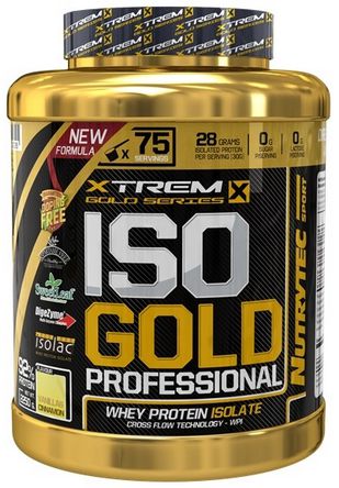 Iso Gold Professional de Nutrytex Xtrem dentro de su nueva línea Gold Series, es una fórmula que contiene aislado de proteína de suero de leche obtenido por microfiltración de flujo cruzado Isolac®, enriquecido con el complejo multi-enzimático Digezyme® y edulcorado con stevia SweetLeaf®.