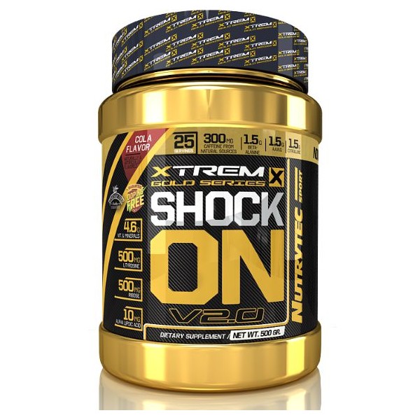 Shock On V2.0 de Nutrytex Xtrem dentro de su nueva línea Gold Series, es una fórmula diseñada para antes tomar antes del entrenamiento con el fin de optimizar el rendimiento durante el entrenamiento gracias a una estudiada combinación de potentes estimulantes del sistema nervioso, compuestos vasodilatadores, energéticos, antioxidantes y un complejo de vitaminas y minerales.