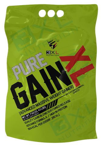 Pure Gain XL de la nueva marca 3XL® Nutrition es el subidor de peso más avanzado con un porcentaje 17/6 entre carbohidratos y proteína para un máximo anabolismo muscular reforzado con vitaminas y minerales.