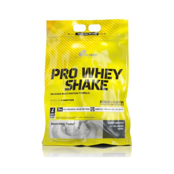 Pro Whey Shake de Olimp® Sport Nutrition es un suplemento en polvo que contiene una mezcla proteica a base de proteínas de suero de leche de la más alta calidad con concentrado de proteína de suero ultra-filtrada, aislado de suero de proteína de leche e hidrolizado de suero de proteína de leche, que ha sido enriquecida con L-glutamina, aceite de ácidos grasos de cadena media (aceite MCT) y con taurina, para lograr una proteína deliciosa ideal para ganar masa muscular.