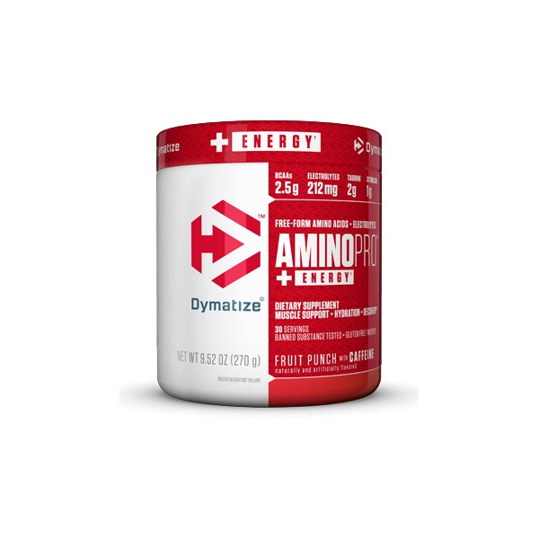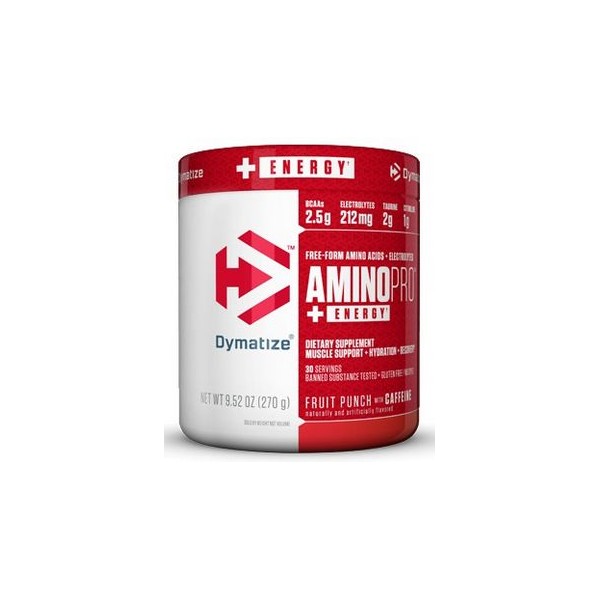 Amino Pro + Energy de Dymatize Nutrition es un suplemento en polvo avanzado que te proporciona 5,5 gramos de una combinación de aminoácidos de cadena ramificada solubles instantáneos, taurina y citrulina en forma libre, con electrolitos y una dosis de cafeína para proporcionar un impulso de energía.