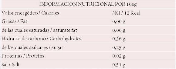 - Contiene menos de 1 caloría por ración de 15 gramos.