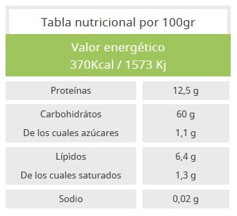 - Fuente saludable de carbohidratos de bajo índice glucémico y de proteínas de alta calidad.