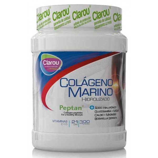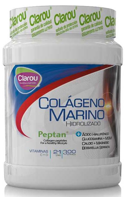 Colágeno Marino Peptan® de Clarou es un suplemento en polvo que contiene colágeno marino Peptan® formulado con péptidos de colágeno hidrolizado de tipo I, y que además ha sido enriquecido con ácido hialurónico, glucosamina, MSM, calcio, magnesio y Boswellia serrata.