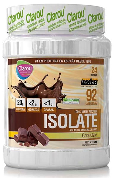 100% Whey Protein Isolate de Clarou es una fórmula proteica que contiene única y exclusivamente el 100% de aislado de proteína de suero de leche Isolac® de la factoría Carbery.