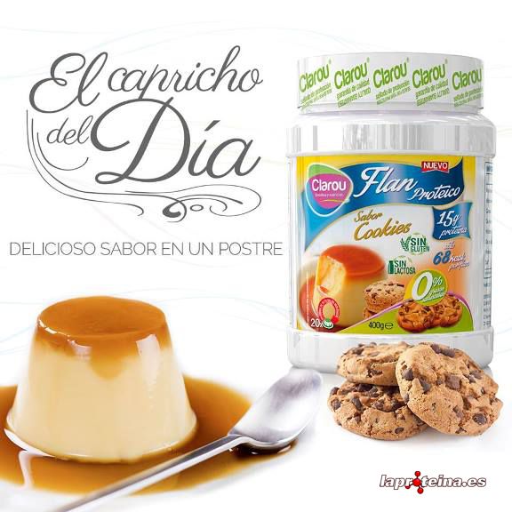 El nuevo Flan Proteico de Clarou es un preparado en polvo para elaborar de forma rápida y fácilmente unos deliciosos flanes hiperproteicos con unos fabulosos sabores a chocolate, cookies o vainilla.