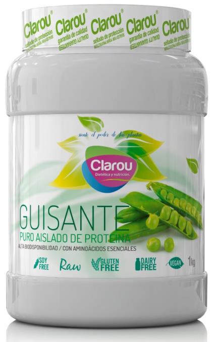 Proteína de Guisante de Clarou es una fórmula proteica que contiene única y exclusivamente el 100% de aislado de proteína de guisante en dos versiones, una con sabor a chocolate y otra neutra sin sabor.