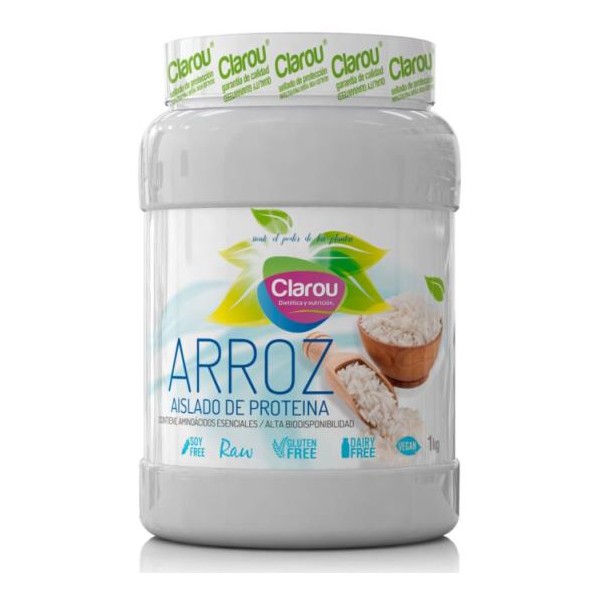Proteína de Arroz de Clarou es una fórmula proteica que contiene única y exclusivamente el 100% de aislado de proteína de arroz en dos versiones, una con sabor a chocolate y otra neutra sin sabor.